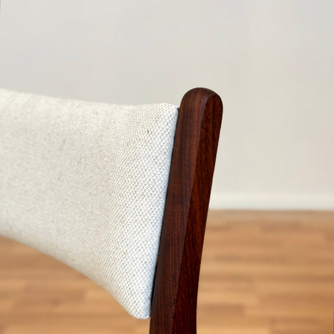 Danskt set med 2 matstolar med armstöd i valnöt av Arne Vodder för Vamo Möbelfabrik, modell "Lene"