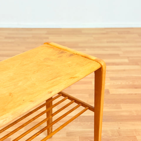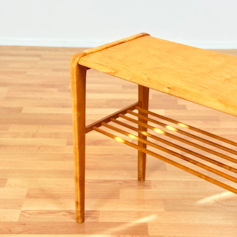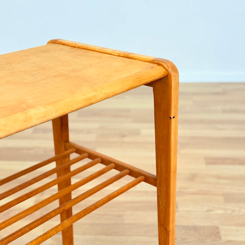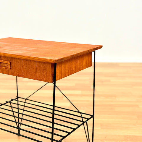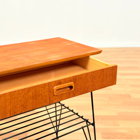 Svenskt sidobord med tidningshylla i teak av Bröderna Miller AB, Bankeryd