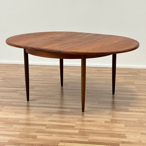 Matbord tillverkat i England på 1960-talet av G-Plan. Det är gjort av massivt trä i konstruktionen och teakfaner på ovansidan. Bordet har noggrant restaurerats av vårt team och har behandlats med ett lager av linolja och hårdvaxolja. Bordet är ett begagnat föremål med användningsspår, såsom små märken och repor. Om du har fler frågor kan du kontakta oss via info@beyovintage.se.