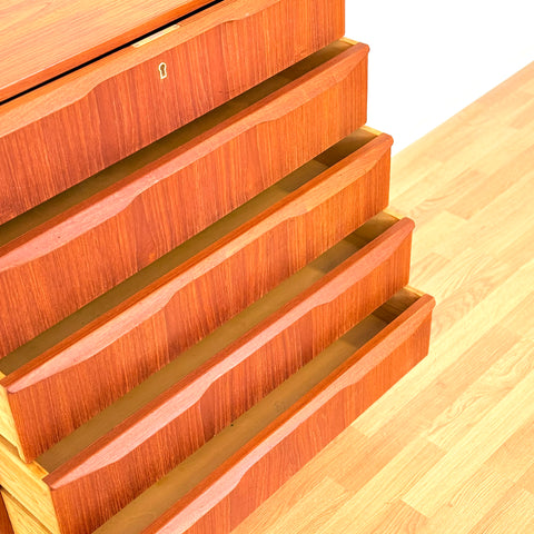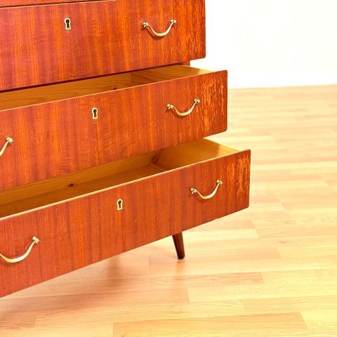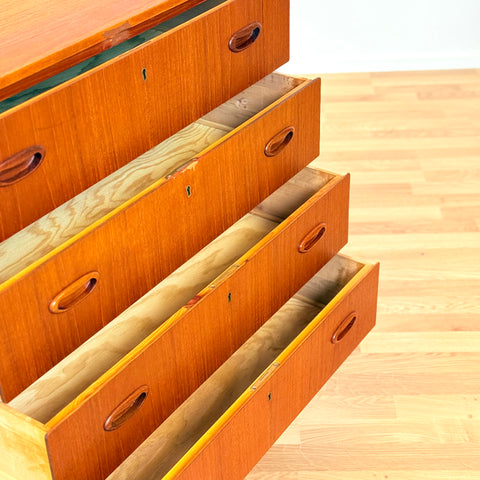 Our collection features authentic mid-century chests of drawers crafted during an era when quality and detail were at the core of every design. Mid-century chests of drawers are instantly recognizable for their clean lines, detailed handles, rounded edges, and the honest beauty of wood.