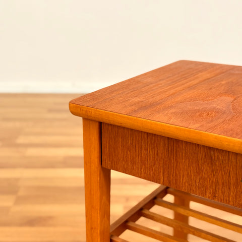 Swedish side table with magazine shelf in teak by Bröderna Miller AB, Bankeryd