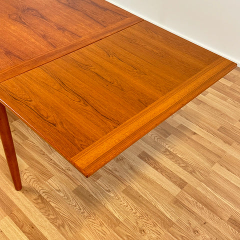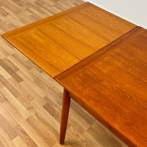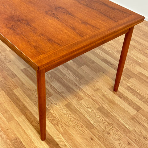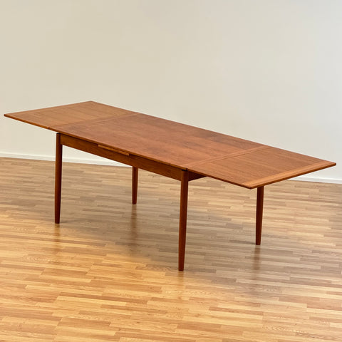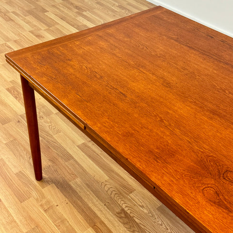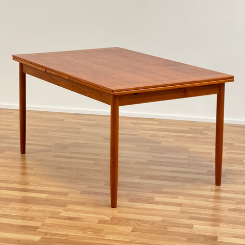 Table à manger fabriquée au Danemark dans les années 1950-60. Elle est en bois de teck massif pour la structure et en placage de teck pour la surface supérieure. La table a été soigneusement restaurée par notre équipe et a été traitée avec une couche d'huile de sol et d'huile dure à la cire. La table est un article d'occasion avec des traces d'utilisation, telles que de petites marques et rayures. Si vous avez d'autres questions, vous pouvez nous contacter via info@beyovintage.se.