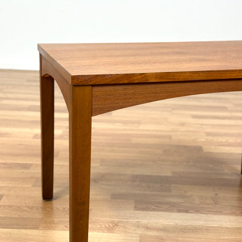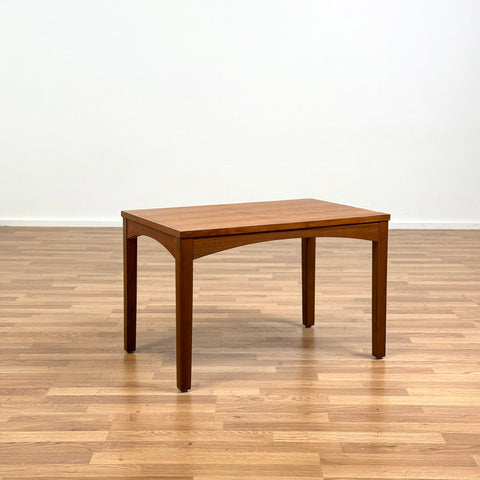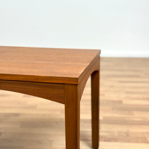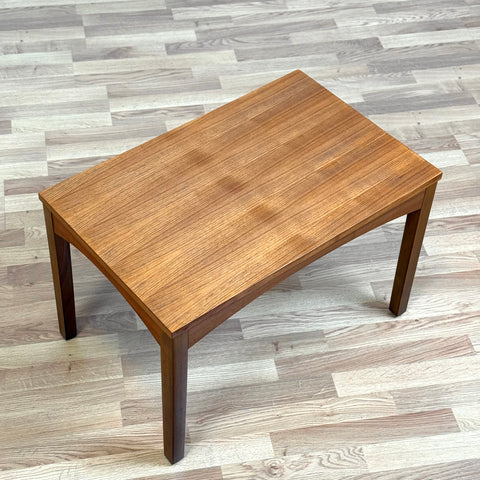 La table d'appoint a été fabriquée en Suède dans les années 1950-60. Elle est composée d'un placage en teck sur la surface supérieure et de bois de hêtre pour les pieds. La table a été soigneusement restaurée par notre équipe et a été traitée avec une couche d'huile de lin et d'huile dure à la cire. La table est un article d'occasion en état restauré avec de petites traces d'utilisation telles que de petites rayures.