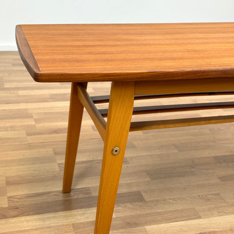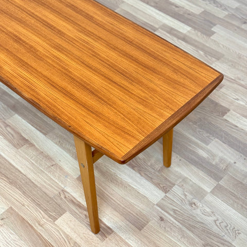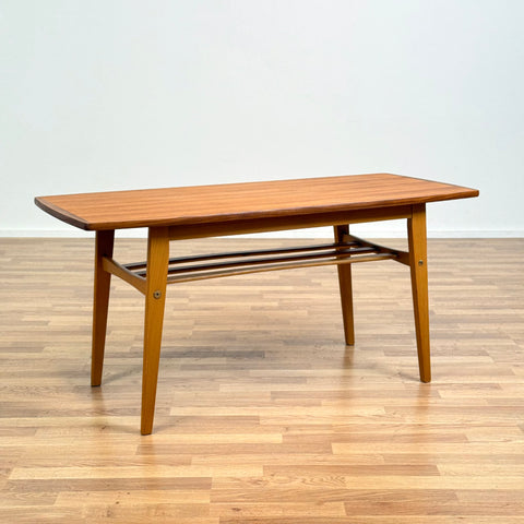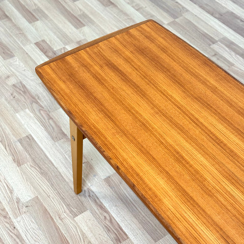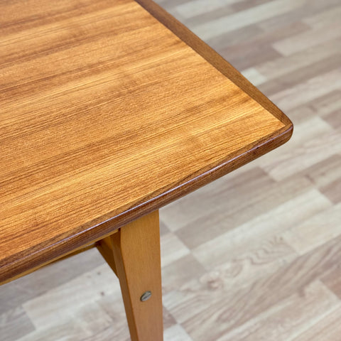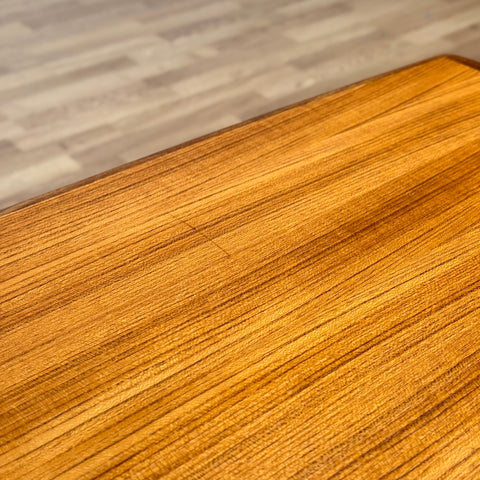 Soffbordet tillverkades på 1950- och 60-talen i Sverige. Det är gjort av teakträ på ovansidan och fanerad teak på strukturen. The soffbordet har noggrant restaurerats av vårt team och har behandlats med ett lager av linolja och hårdvaxolja. Bordet är en begagnad vara i restaurerat skick med små spår av användning såsom små repor.