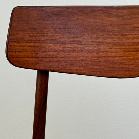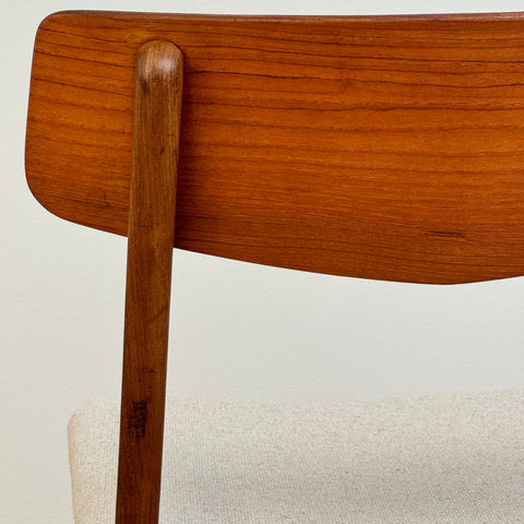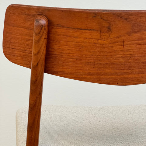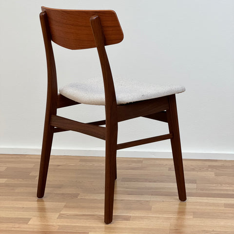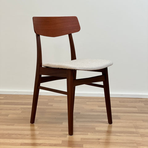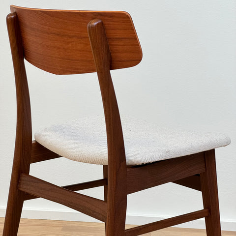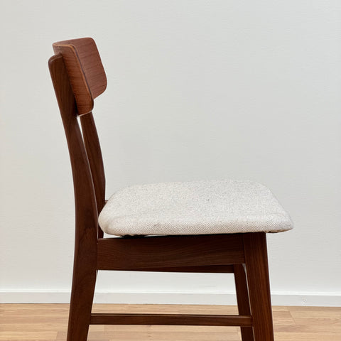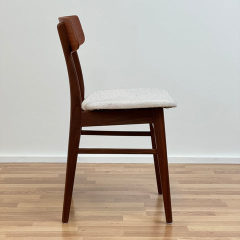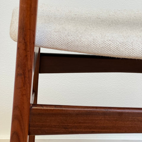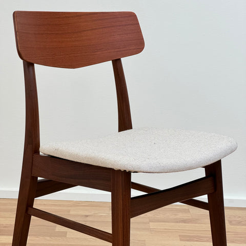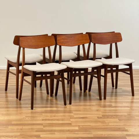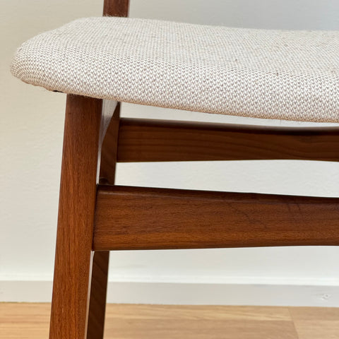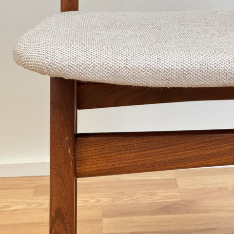 Set of 6 chairs manufactured in Denmark in the 1950s-60s by Farstrup Möbler. The chairs are made of solid walnut wood on the structure and teak wood on the backrest. The chairs have been fully restored and reupholstered by our team. The padding has been changed and we choose a light beige fabric for these pieces. They are sold as a set 6 and the price is per piece, to see availability of more of the same chairs please contact us via info@beyovintage.se.