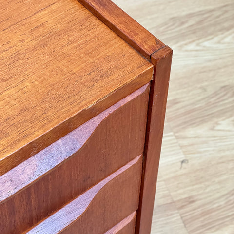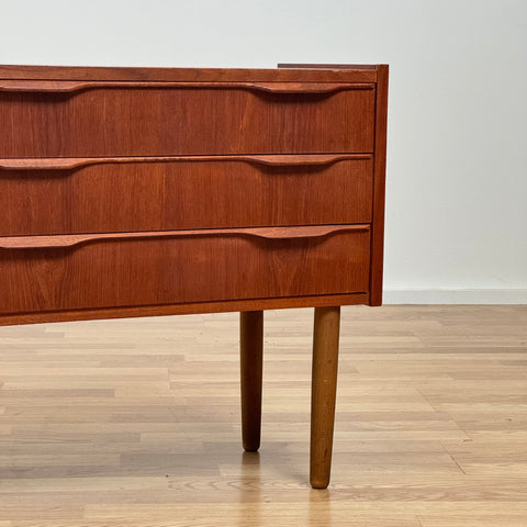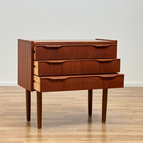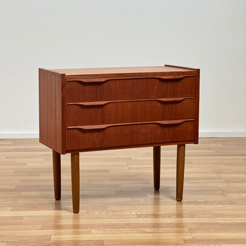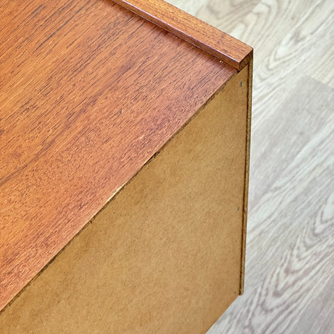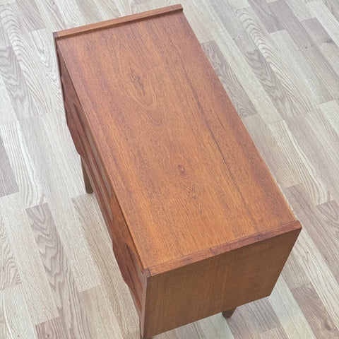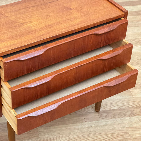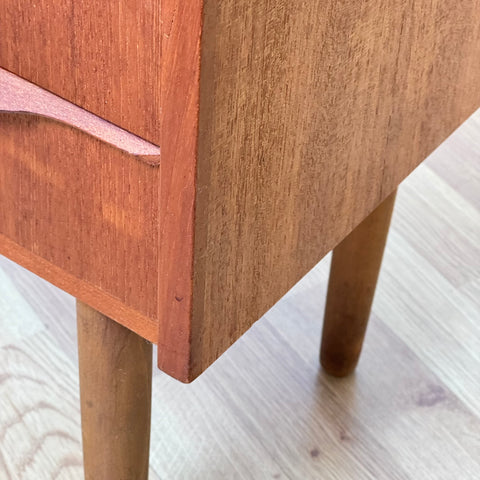 Nightstand manufactured in Denmark in the 1950s-60s. It is made of teak wood on the structure and teak on the top surface. The bedside table has been carefully restored by our team and has been treated with a layer of ground oil and hard wax oil. The table is a used item with traces of use, such as small marks and scratches. If you have more questions you can contact us via info@beyovintage.se.