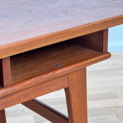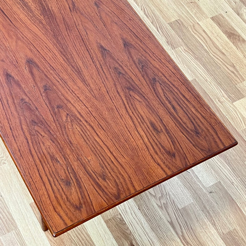 Soffbord tillverkat i Danmark på 1950-60-talet. Det är gjort av teakträ i konstruktionen. Bordet har noggrant restaurerats av vårt team och har behandlats med ett lager av linolja och hårdvaxolja. Bordet är ett begagnat föremål med användningsspår, såsom små märken och repor. Om du har fler frågor kan du kontakta oss via info@beyovintage.se.